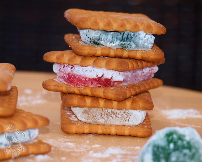 Made with love and simplicity, two petit-beurre cookies gently hold a piece of loukoumi between them, like a little sandwich, pressed softly to unite the crispiness of the cookie with the chewy sweetness of the loukoumi. It’s a “ritual” that brought together young and old around the table, filling the house with the scent of loukoumi: rose, mastic, bergamot...
