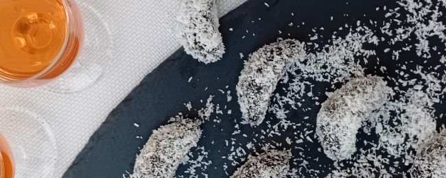 - Brush the truffles with the dissolved honey, dip them in the desiccated coconut and they are ready.
