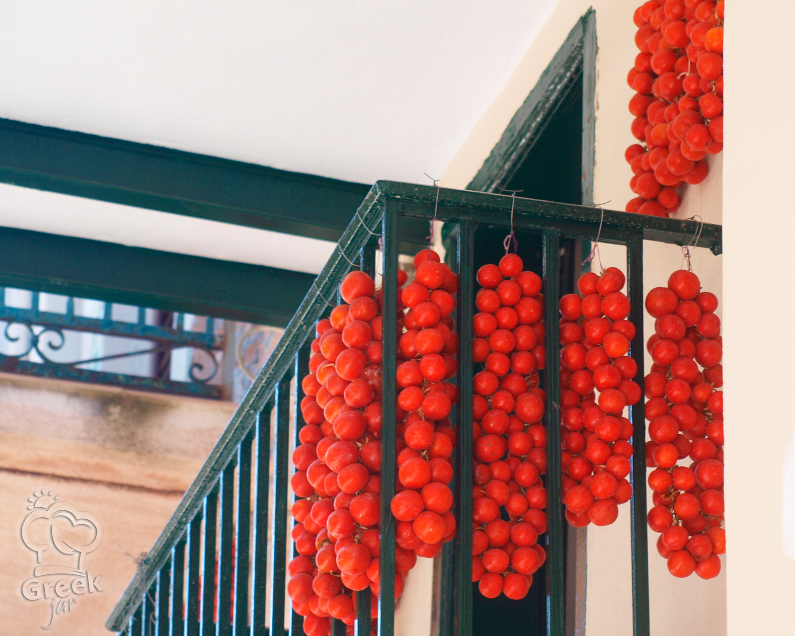 Στο νησί της Χίου, το καλοκαίρι δεν ξεθωριάζει ποτέ... Μικρά άνυδρα ντοματάκια, γεμάτα ήλιο και γεύση, περνιούνται ένα-ένα με κλωστή και σχηματίζουν τις χαρακτηριστικές ρέστες – κόκκινες σειρές που κρέμονται σαν στολίδια σε αυλές, αποθήκες και μπαλκόνια.