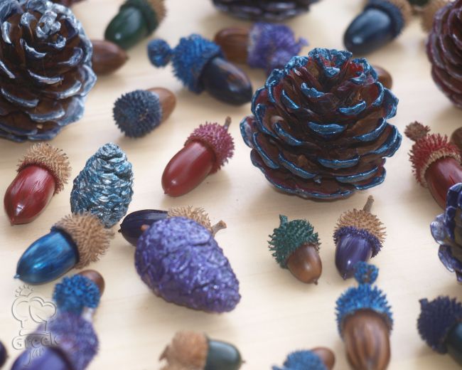 - Let them dry and the acorns are ready for decorating! You can put them in a glass jar with some leaves, in a decorating plate with a beautiful candle or just spread them on your furniture . You can also use them for further crafting!