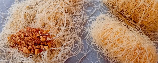 Untangle the phyllo kadaif very well.