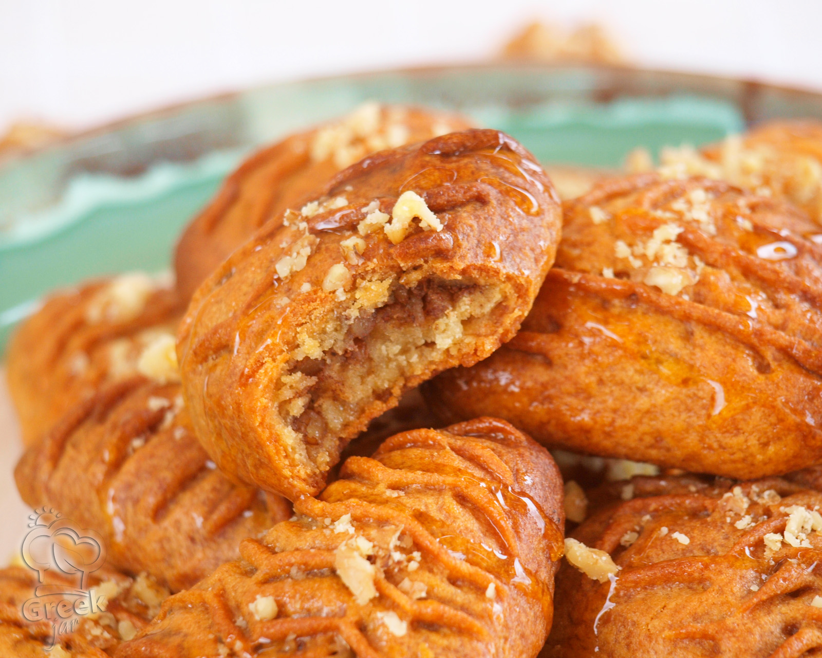 - When they come out of the oven, dip them into the cold syrup, turn them in the syrup for about 1 min and transfer to an airtight container with a slotted spoon. Immediately sprinkle them with chopped walnuts and close the container when cooled.
